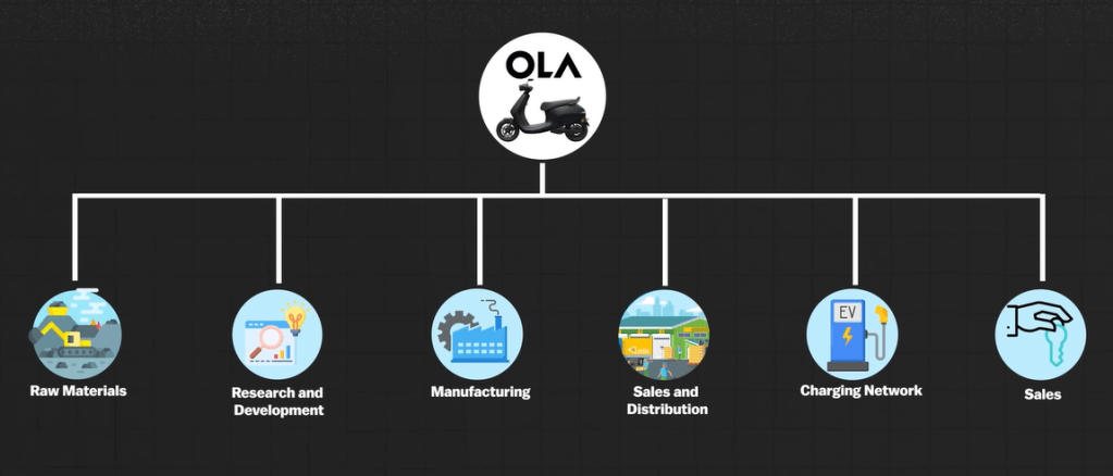 Ola Electric is strategically focusing on vertical integration to bolster its position in the Indian electric vehicle (EV) market. By investing in its own manufacturing facility, Ola ensures control over the entire production process of electric scooters, enhancing quality and reducing costs. The company is also developing its own network of charging stations to streamline the charging experience for customers. Additionally, Ola integrates proprietary technology into its vehicles, including advanced software for vehicle management. Despite challenges such as limited access to crucial raw materials like lithium and cobalt, and a smaller production scale, Ola’s significant investments in R&D and its Gigafactory for battery manufacturing highlight its commitment to overcoming these hurdles. This comprehensive vertical integration approach aims to improve operational efficiency, leverage government subsidies, and achieve economies of scale, positioning Ola for success in the competitive EV landscape.